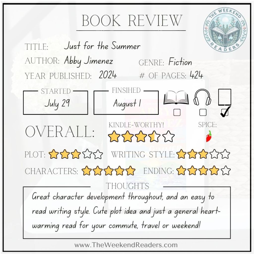 Keeping the summer vibes going for now though, ‘Just for the Summer’ by Abby Jimenez turned out to be another great weekend read, perfect for the beach or even just on your way to where you’re going! Emma & Justin are cursed as ‘Good Luck Chucks’, their love interests always finding ‘The One’ immediately after dating each of them. They decide to break the curse by dating each other, just for the summer.