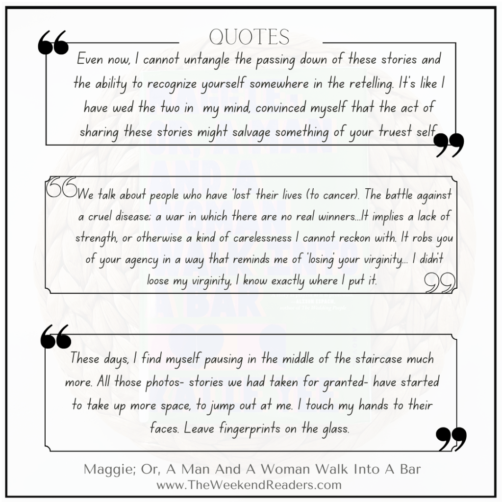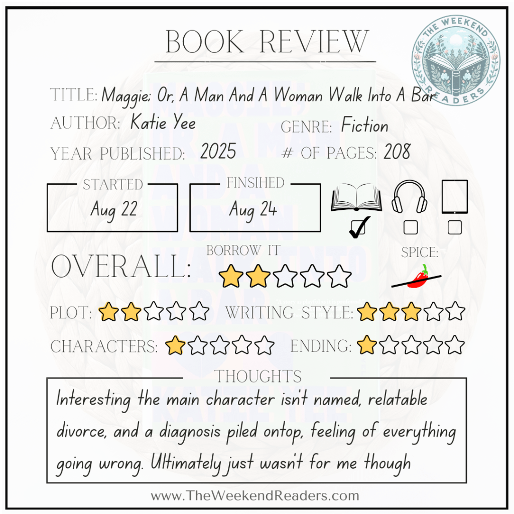 One of the books I managed to grab from the library was this one, Maggie; Or, A Man And A Woman Walk Into A Bar by Katie Yee.