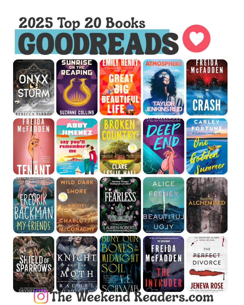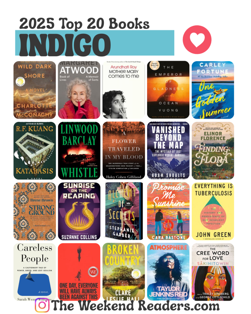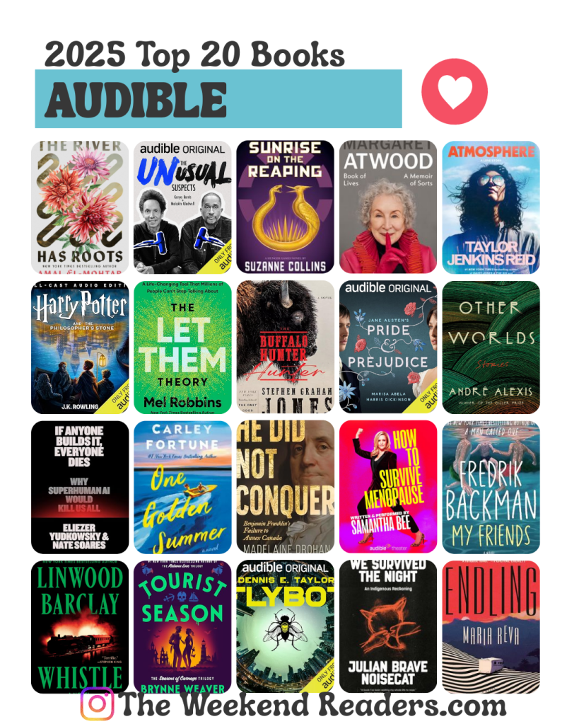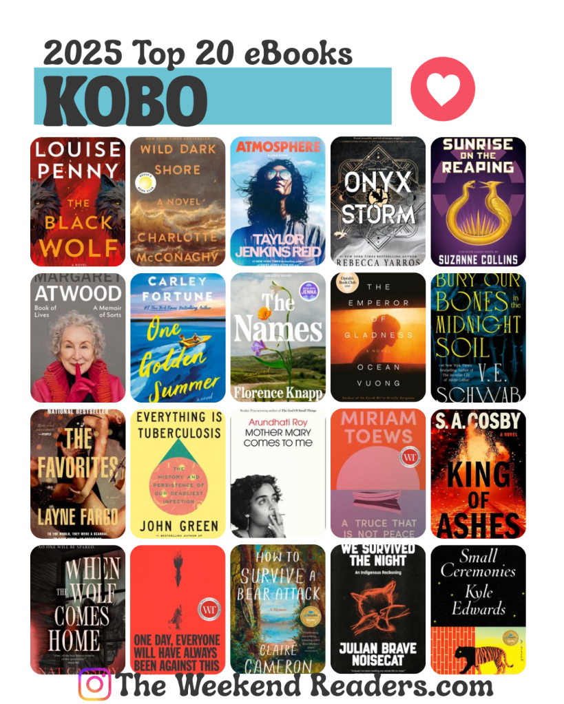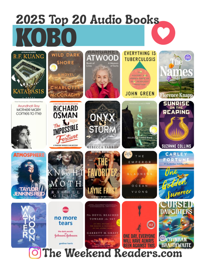 Goodreads Top, New York Times Top 10, Amazon’s Top 20, Kobo Top eBooks, Kobo Top Audio Books, Audible, Indigo Top Bestsellers, Book Browse